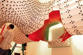 installed at the bridgegallery in manhattan’s lower east side, a temporary installation which topology consists of 5,000 colourful laser cut panels which are held together by clips.